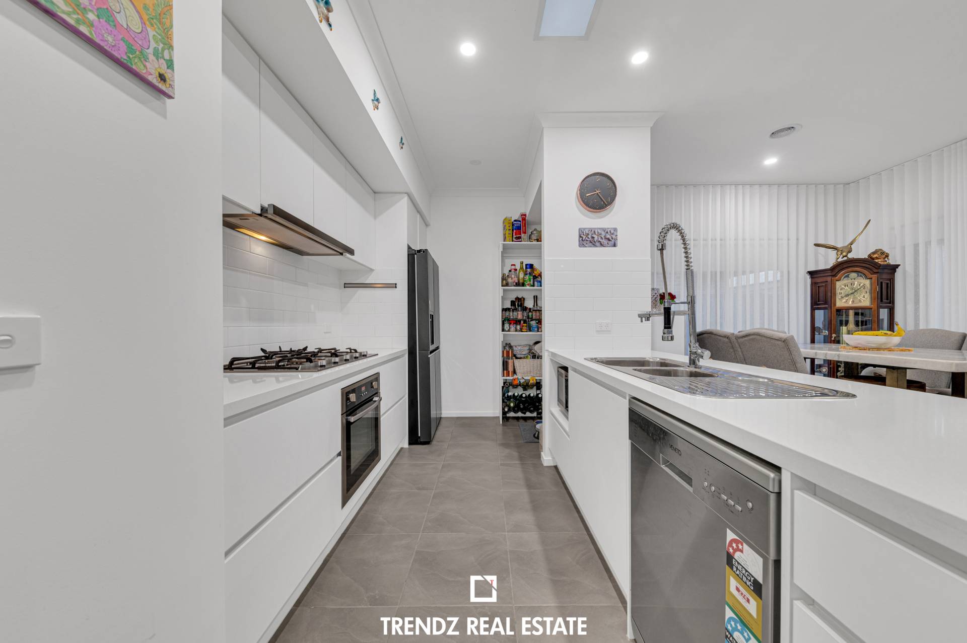 • Bright open kitchen with stone benchtops, quality stainless steel appliances, walk in pantry